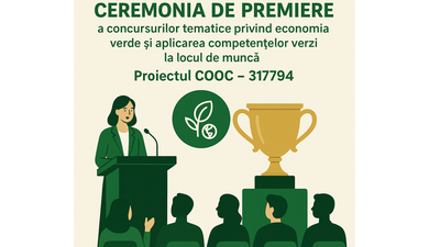 🌿 Vă invităm să participați la Ceremonia de premiere a concursurilor tematice privind economia verde și aplicarea competențelor verzi la locul de muncă, organizată în cadrul proiectului "Competențe pentru ocupare și învățare la locul de muncă", Cod SMIS 317794.
