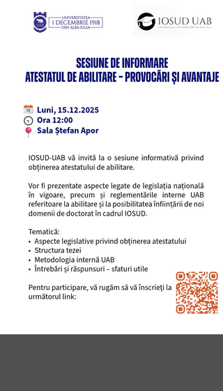 Mai multe...Asociația AS 2001 Alba Iulia, în parteneriat cu Universitatea „1 Decembrie 1918” din Alba Iulia, anu ...