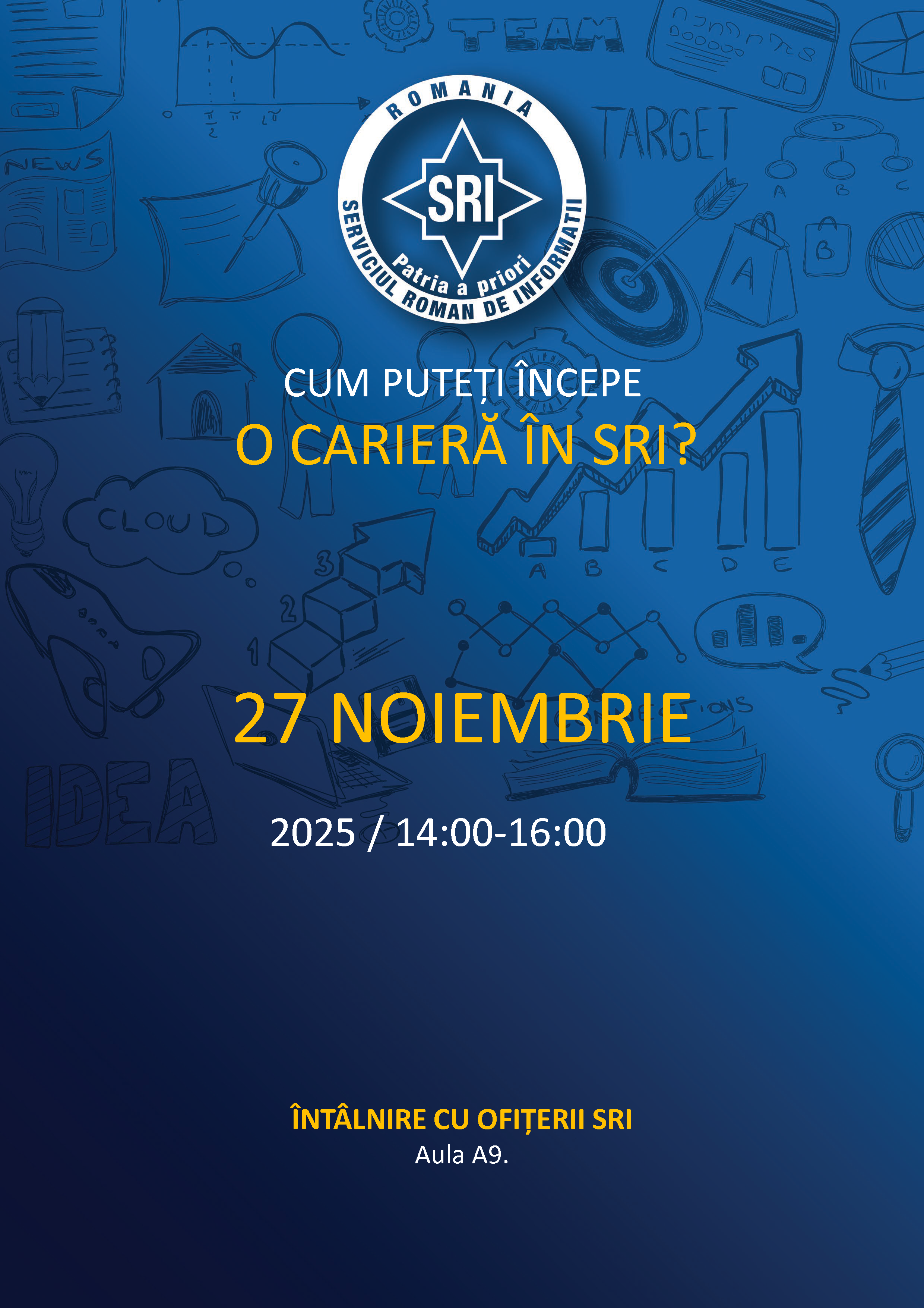 Dacă dorești să afli mai multe despre oportunitățile profesionale și despre competențele necesare pentru a lucra în acest domeniu, te invităm la o întâlnire specială cu reprezentanți și specialiști ai SRI!