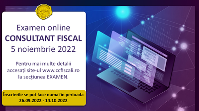 Camera Consultanților Fiscali va organiza la data de 5 noiembrie 2022, în sistem online, examenul de atribuire a calităţii de consultant fiscal sau de consultant fiscal asistent