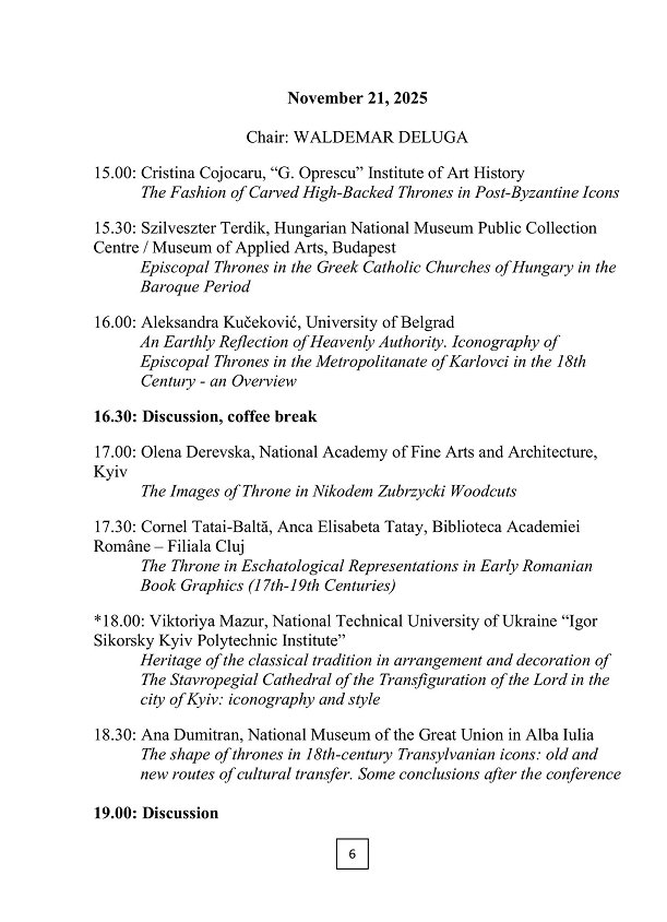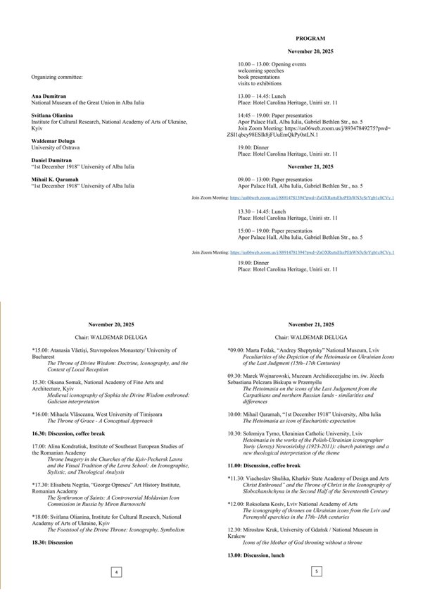 Conferința Internațională „Hetoimasia-Throne-Syntronon in Post-Byzantine Iconography”, 20-21 noiembrie 2025, Alba Iulia