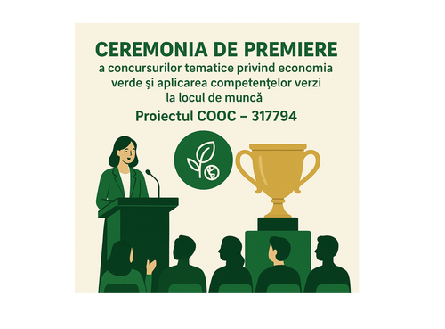 Ne bucurăm să vă invităm la un eveniment special, dedicat recunoașterii și celebrării rezultatelor obținute în cadrul concursurilor tematice care au adus în prim-plan importanța economiei verzi și rolul esențial al competențelor verzi în dezvoltarea profesională.
