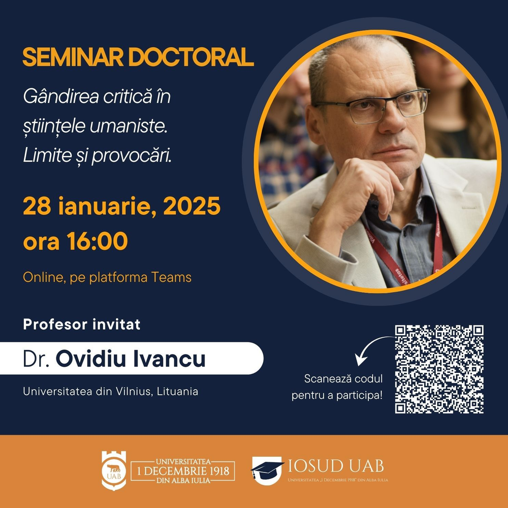 În acest context, vă invităm să participați la seminarul doctoral susținut de Dr. Ovidiu Ivancu,